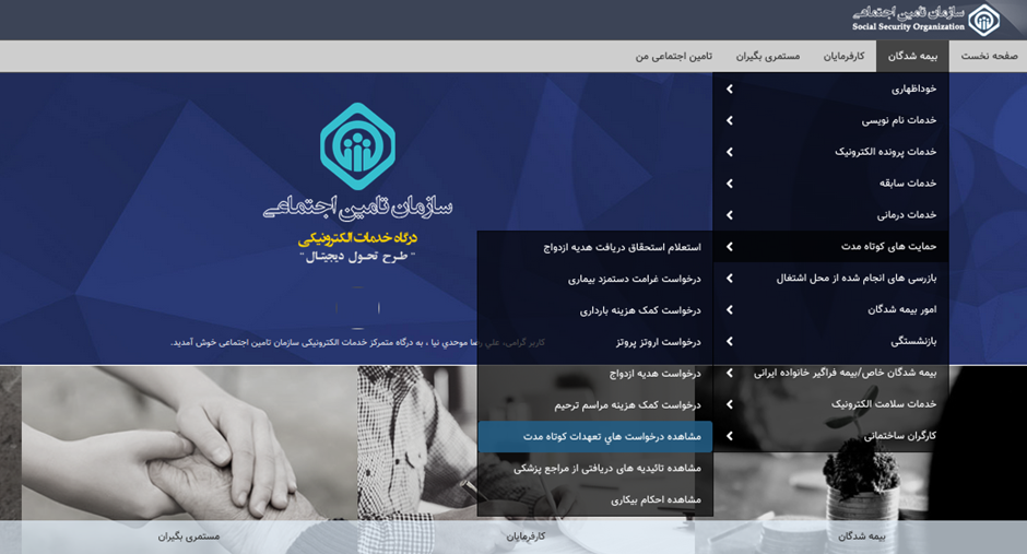 پيگيري وضعيت درخواست: پس از ثبت درخواست، مي توانيد وضعيت آن را از طريق سامانه پيگيري کنيد. در صورت بروز هرگونه مشکل يا تاخير، برای پیگیری و رفع مشکل مي توانيد به شعبه تامين اجتماعي مربوطه مراجعه نمایید.